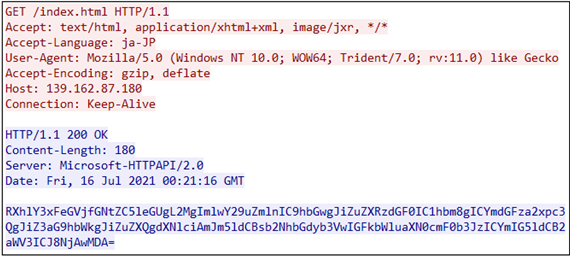 Flagpro v1.0 및 v2.0에 대한 C&C 서버 연결 처리는 Internet Explorer의 COM 개체를 사용합니다. Flagpro는 HTTP를 사용하여 C&C 서버와 통신합니다. Flagpro는 명령 요청, OS 명령 실행 결과 전송 또는 수집된 인증 정보를 전송할 때 특정 URL 경로 및 쿼리를 사용하여 C&C 서버에 액세스합니다. Base64로 데이터를 인코딩하여 C&C 서버로 보내는 방식을 사용합니다. 다음 표는 Flagpro의 활동과 URL 경로 및 쿼리 간의 관계를 보여줍니다.